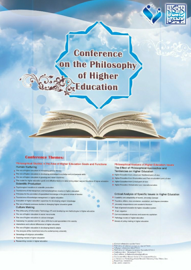 پژوهشکده مطالعات بنیادین علم و فناوری دانشگاه شهید بهستی با همکاری انجمن فلسفه تعلیم و تربیت ایران، ششمین همایش فلسفه آموزش عالی را روزهای 12 و 13 آبان 94 در مرکز همایش های بین المللی دانشگاه برگزار می نماید.