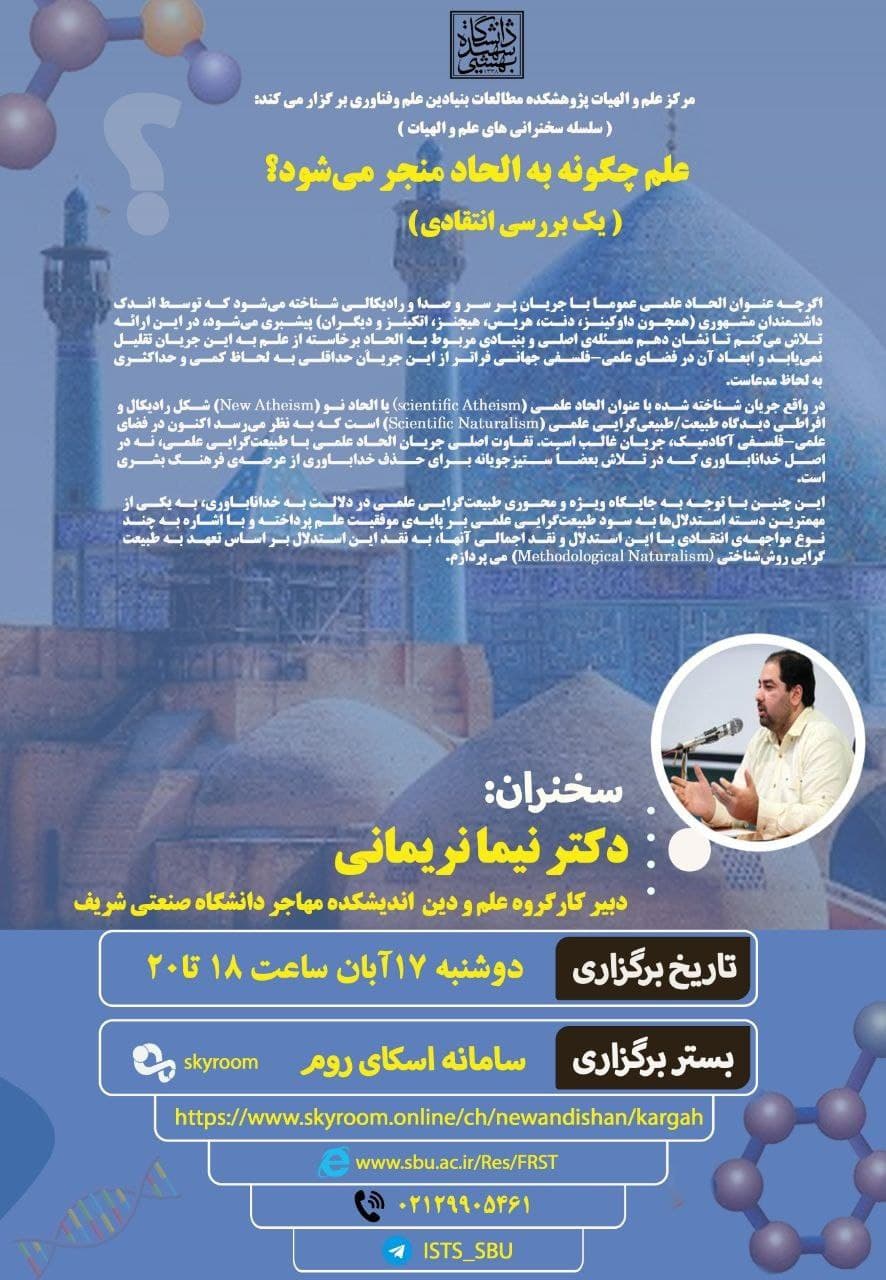 مرکز علم و الهیات پژوهشکده مطالعات بنیادین علم و فناوری دانشگاه شهید بهشتی برگزار می کند: