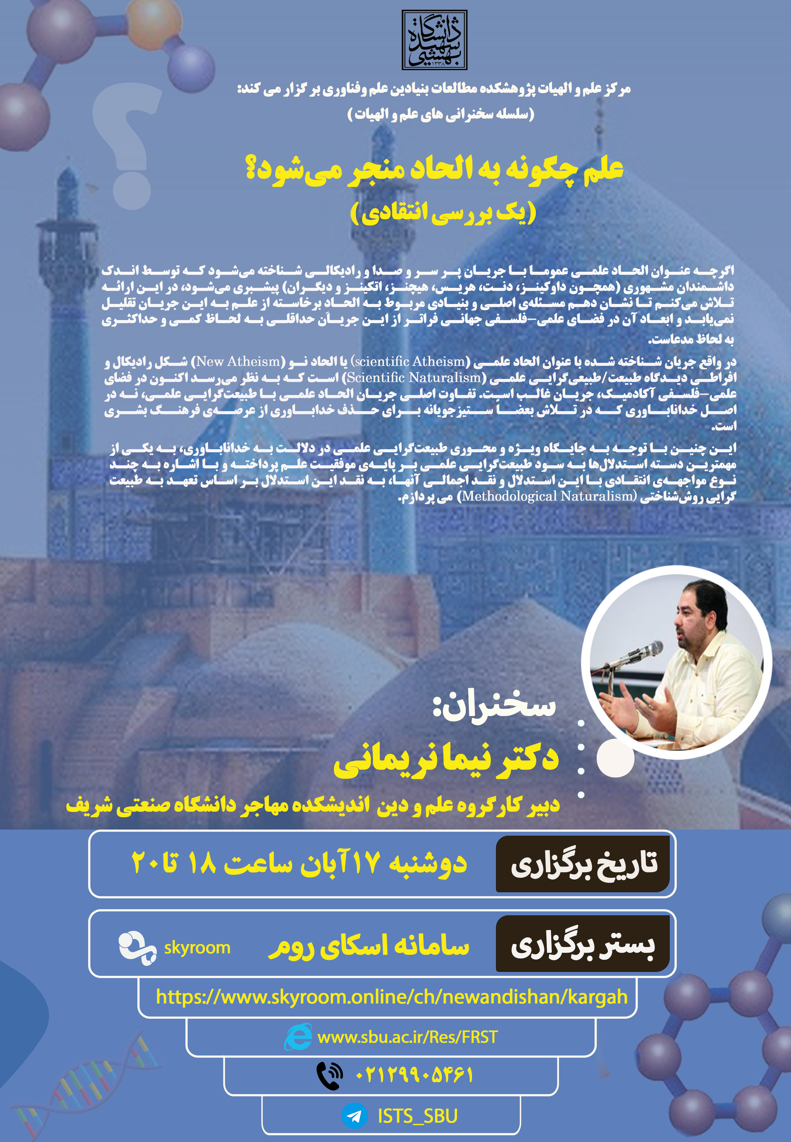 مرکز علم و الهیات پژوهشکده مطالعات بنیادین علم و فناوری دانشگاه شهید بهشتی برگزار می کند: