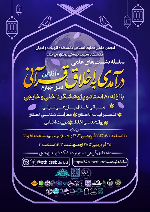 چهارمین دوره نشست‌های درآمدی به اخلاق قرآنی از سوی انجمن علمی معارف اسلامی و دفتر هم‌اندیشی استادان دانشگاه دانشگاه شهید بهشتی برگزار می‌شود.